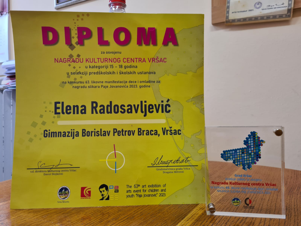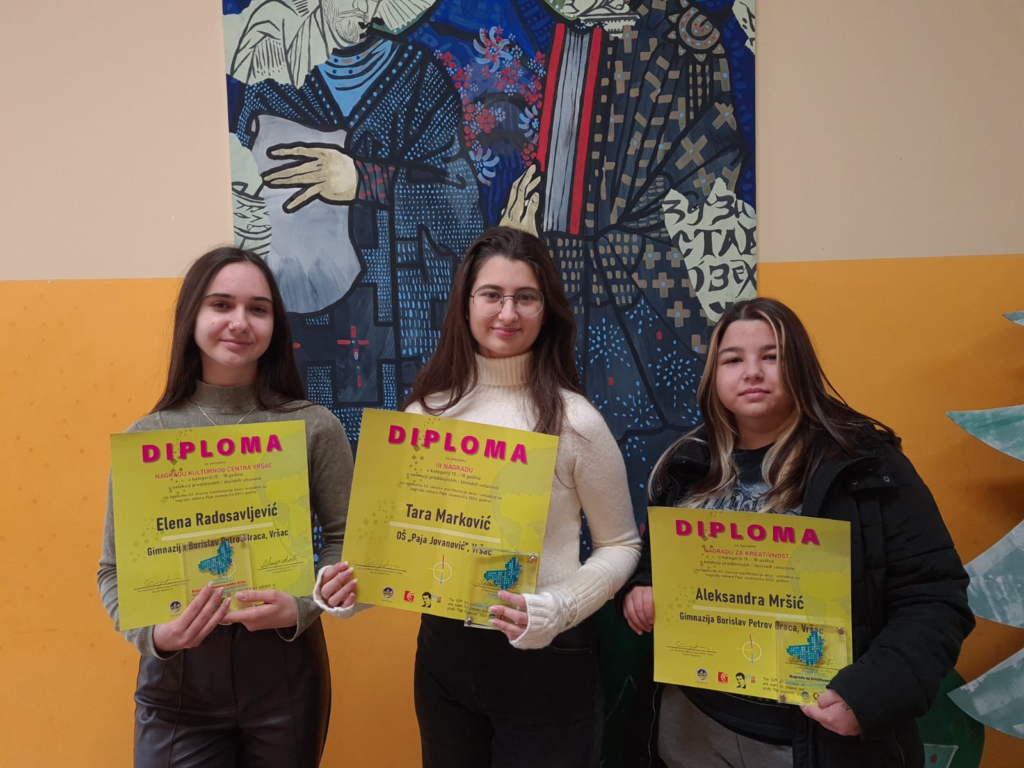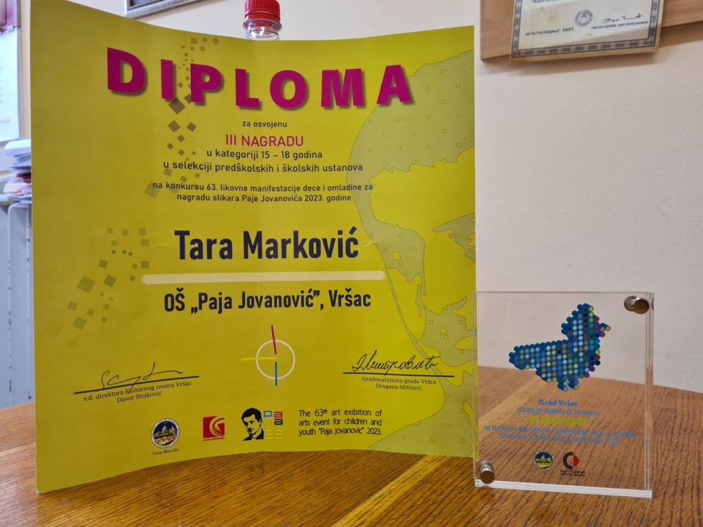-Tara Marković (I4) – premiul al 3-lea (Tara a câștigat premiul ca elevă în clasa a VIII-a, în timp ce urma școala elementară „Paja Jovanović”)