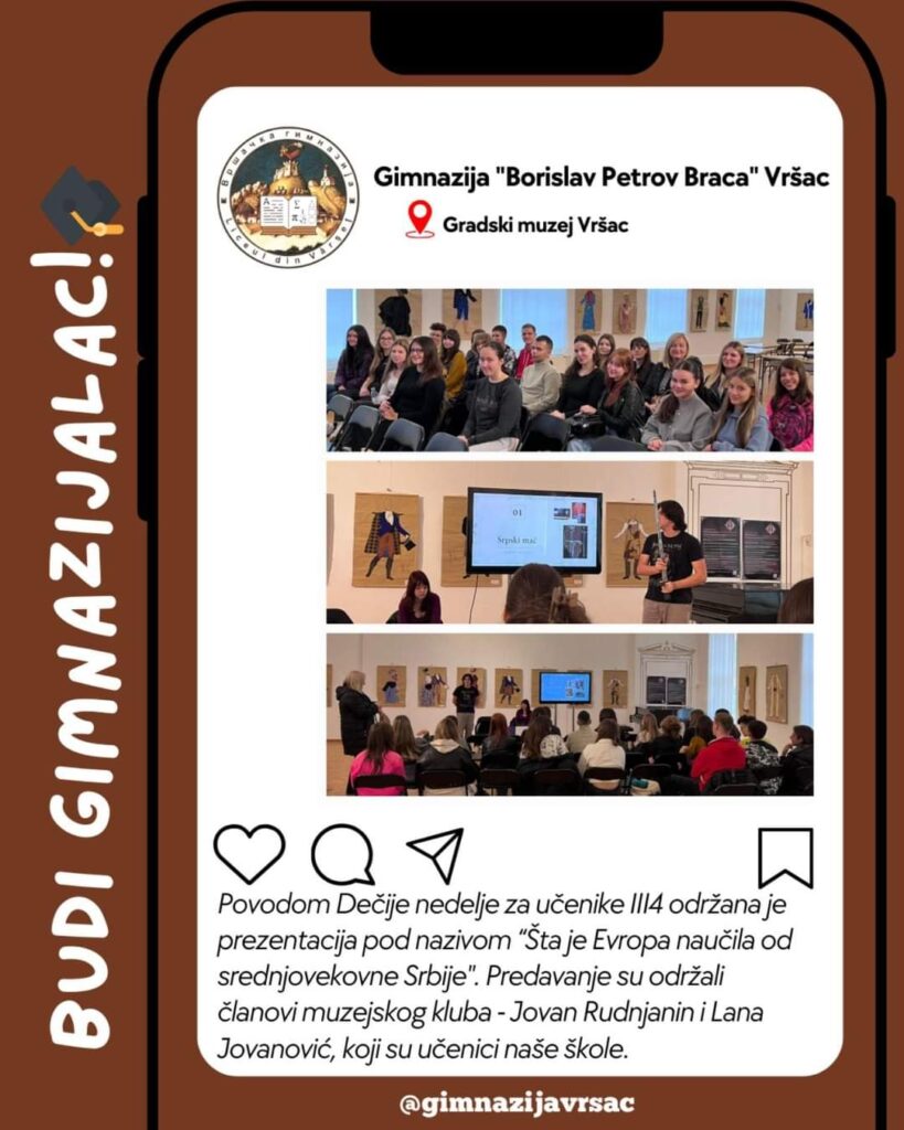În spatele Săptămânii Copiilor din acest an, care a avut loc în incinta muzeului, se află „Clubul Muzeului”, precum și Muzeul Orașului Vršac însuși.